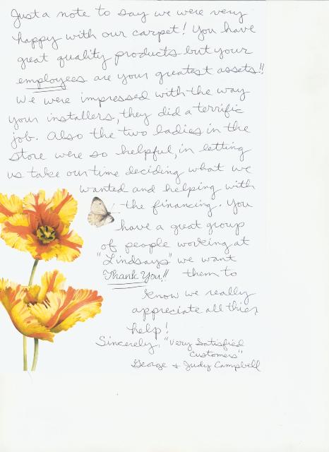 WE HAVE LIVED IN OUR HOUSE FOR 20 YEARS AND THIS WAS OUR THIRD RENOVATION JOB. OVER THE YEARS WER HAVE DEALT WITH MANY CONTRACTORS AND WE HAVE NEVER BEEN TREATED AS WELL AS WE HAVE BEEN, BY THE STAFF AND CREW AT LINDSAY'S.